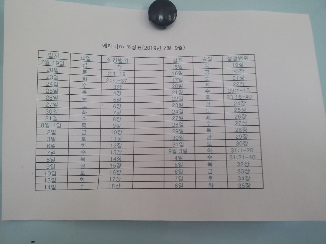 한주간 말씀 묵상표(7월~9월) 예레미야말씀