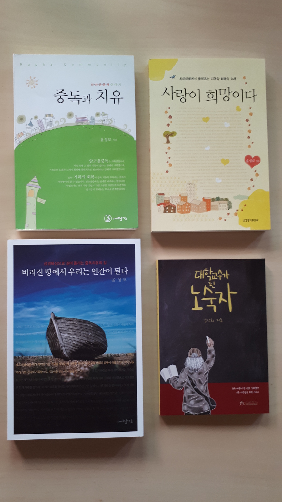 라파중독치유공동체 안내 도서라파공동체2026.03.28 15:232 라파중독치유공동체 안내 도서를 소개합니다.윤성모 목사님이 지은 세 권의 도서가 있습니다.사랑이 희망이다(2009, 생명의 말씀사)중독과 치유(2011, 도서출판 대장간)버려진 땅에서 우리는 인간이 된다(2018, 도서출판 대장간)그리고 도박(주식)중독자였다가 회복된 김덕희 형제님의 회복간증집대학교수가 된 노숙자(2018, 시커뮤니케이션) 가 있습니다.